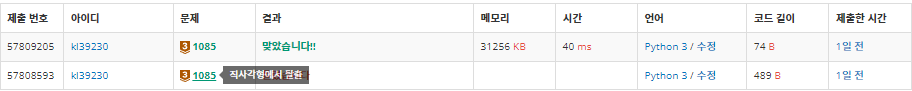 | [Python Bronze I 11050] 이항 계수 1 (0) | 2023.04.06 |