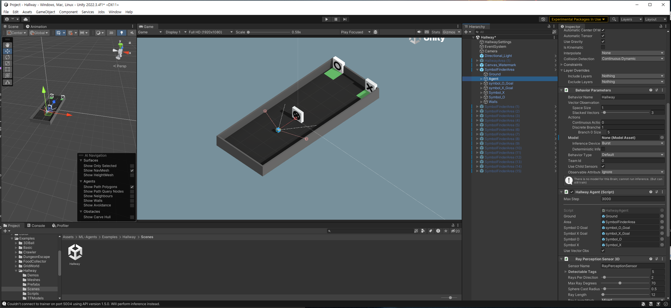 Assets -> ML-Agents -> Examples -> Hallway -> Scenes를 열어주면 됩니다.