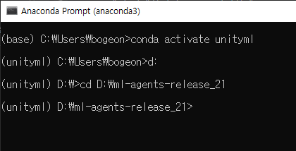 conda activate unityml(가상환경이름)
